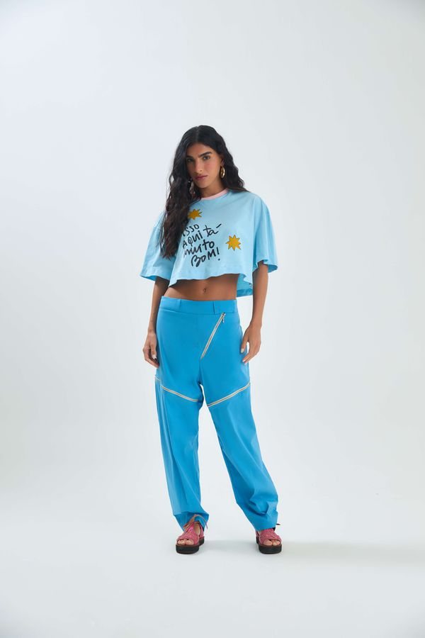 A Calça Liviane une o conforto do shape esportivo com o estilo moderno da alfaiataria descontraída. Possui cintura alta com elástico e cadarço ajustável, bolsos frontais com zíper aparente e recortes que trazem movimento. O azul intenso garante destaque imediato, enquanto o design amplo e estruturado proporciona liberdade com atitude.